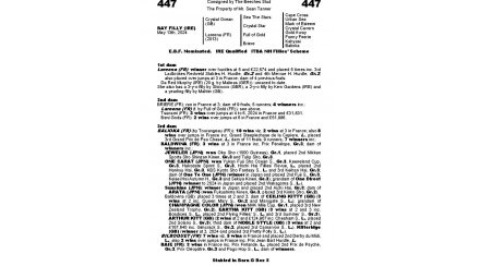 LAREENA : gagnante sur les haies en Irlande ainsi que 2 places dans des groupes 2 toujours en haies. Actuellement pouliniere.