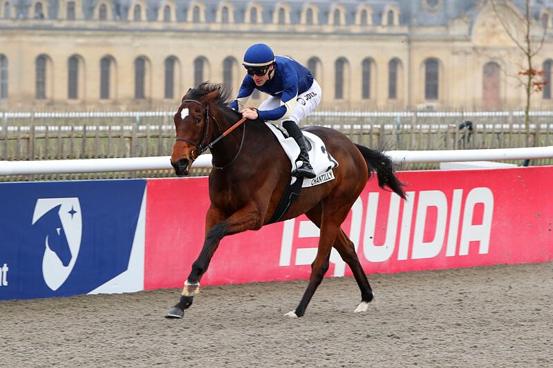 Associée à Clément Lecoeuvre, Concorde Agreement a triomphé de bout en bout en solitaire pour ses débuts à Chantilly © APRH