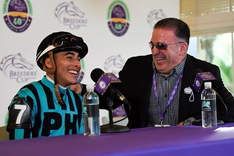 Larry Rivelli, l'entraîneur de Nobals, avec le jockey Gerardo Corrales