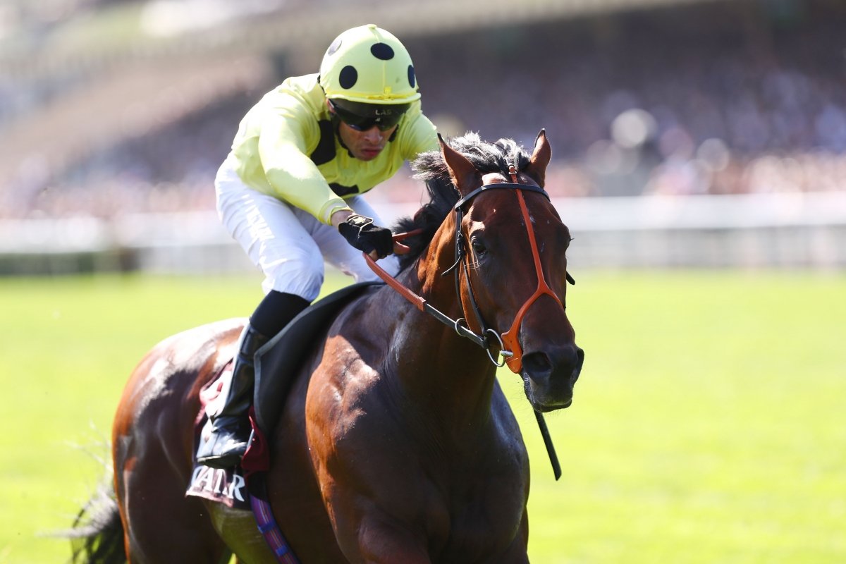 Rosallion associé à Sean Levey lors de leur victoire dans le Qatar Prix Jean Luc Lagardère (Grp 1). (photot APRH)