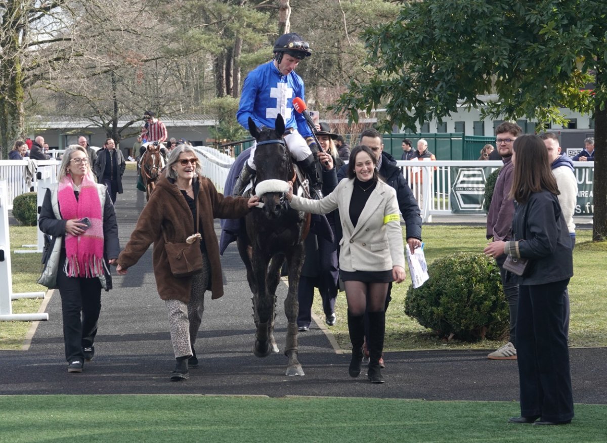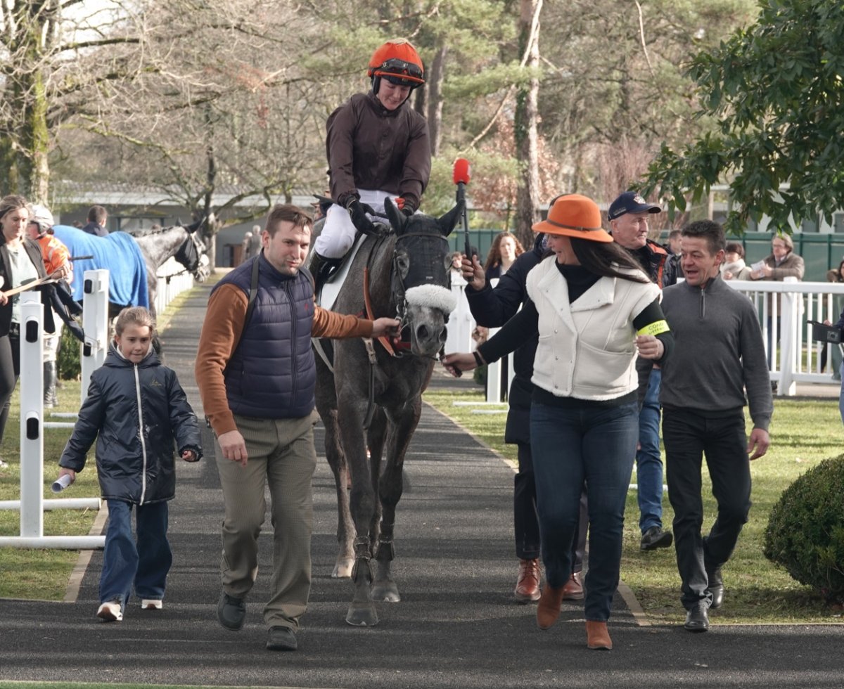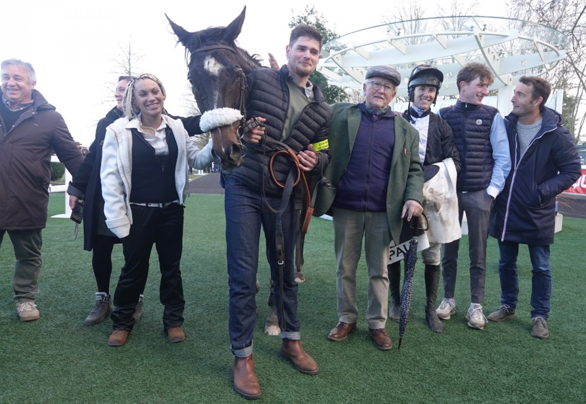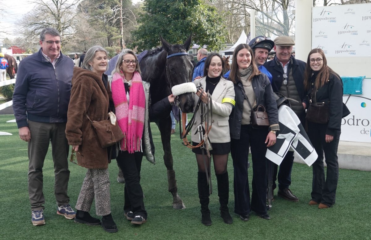 A gauche de l'image, Guillaume de Saint-Seine à coté de Francois Bayrou le maire de Pau et ancien premier ministre et à tout à droite, Jean-Louis Foursans Bourdette le président de l'hippodrome de Pau avec Fréderic Landon. Félicitations à tout l'entourage gagnant.