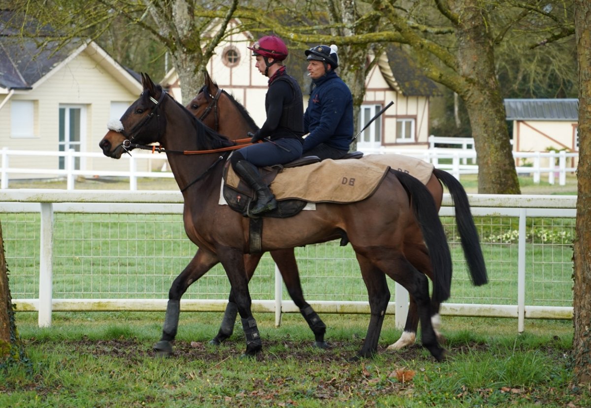 Ce jeudi 12 Mars, pas moins de 8 entraineurs se sont succédés pour travailler leurs chevaux et les mettre plus "en mode course" sur la piste plate en gazon de l'hippodrome de Segré, qui a bénéficié d'un entretien permanent. Ce jeudi matin, on a noté la présence de Pascal Journiac, Jérome Delaunay, Philippe et Camille Peltier, Nicolas Devilder, Hervé Jumelle, Donatien de Beauregard, Gabriel Leenders et Etienne d'Andigné, chacun présentant un lot de 4 à 10 chevaux.