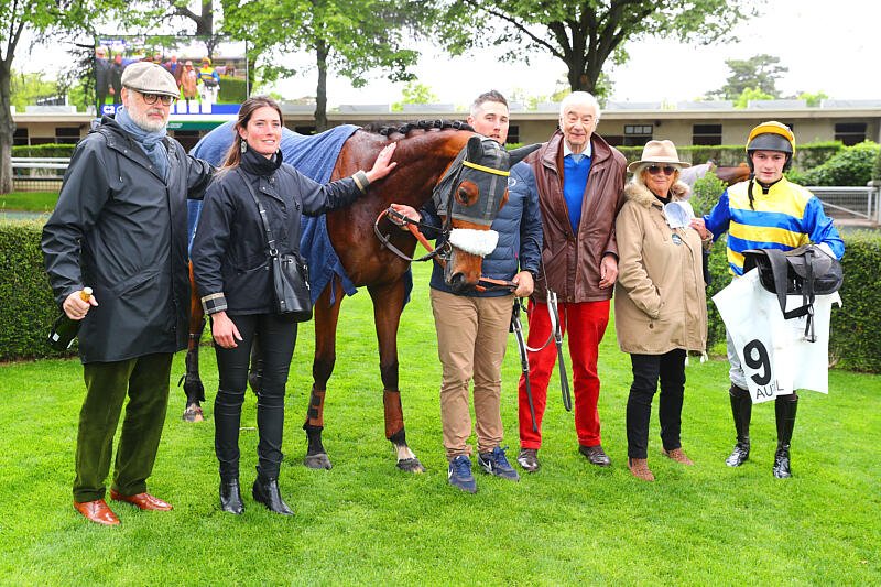 Kouca de Thaix avec Michel Bourgneuf et sa femme à droite de la photo lorsqu'elle s'était imposée dans le Prix la Veine à Auteuil.