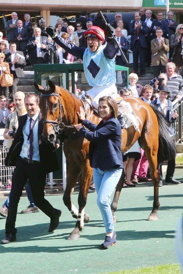 Formidable journée pour Mme Bryant qui est récompensée par ses chevaux et les professionnels à qui elle a fait confiance, comme M.Dominique Bressou l'entraîneur de Milord Thomas