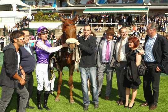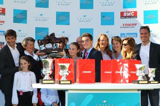 Remise des trophées du Px Ferdinand Dufaure Gr.1 pour L'entourage de Kotkikova, Jockey Jacques Ricou - Entraîneur M.Jean-Paul Gallorini - Eleveur Haras des Coudraies