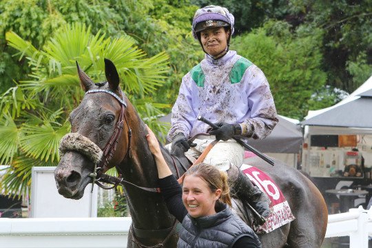 Ming Dynasty affectueusement récompensé par Umberto Rispoli pour leur victoire dans une Listed à Clairefontaine - Entraînement M.Mickël Delzangles