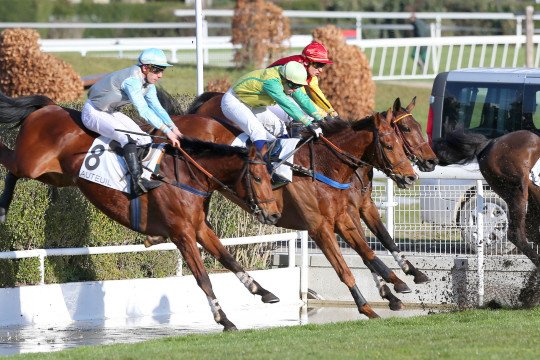Al Bucq et Solway ont animé à bon rythme le Prix Robert de Clermont-Tonnerre (Gr.3). Impressionnants, comme ici au saut de la rivière des tribunes.