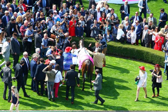 La foule était présente pour accueillir le lauréat du Grand Steeple-Chase de Paris édiion 2017