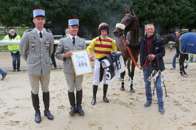 Dubourg, encore et toujours ! Don du Ciel (Network) remporte le cross Bellifontain (son 1er en 7 sorties), sous loeil de gradés de l'Ecole Militaire d'Equitation, sponsor de la course