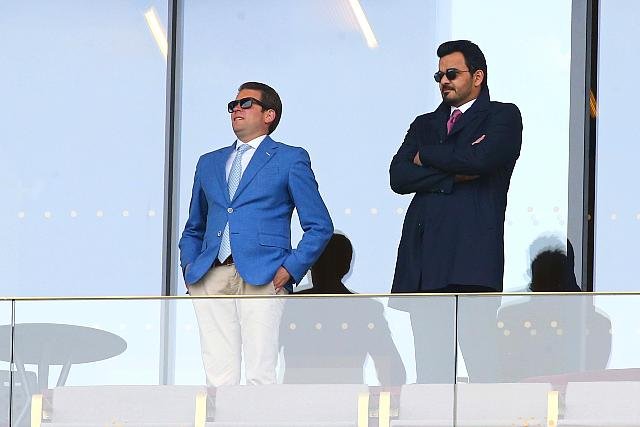 Dimanche à Longchamp : le Sheikh Joaan Al Thani (Al Shaqab Racing) ici au coté de Benoit Jeffroy, le manager du Haras de Bouquetot