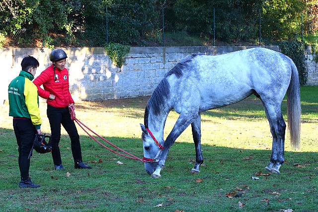Jeudi aux Aigles : on debriefe pendant que le beau gris profite de l'herbe