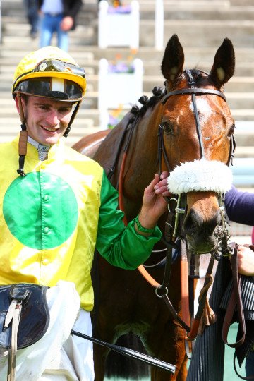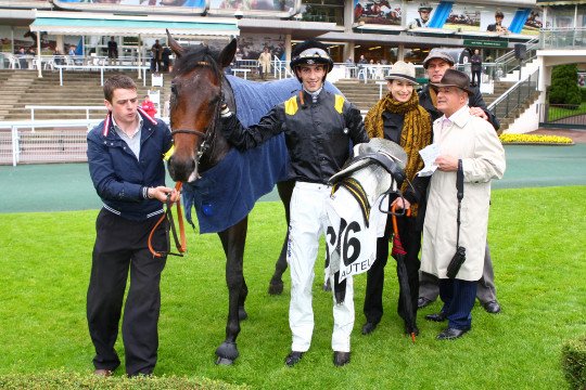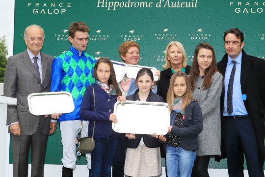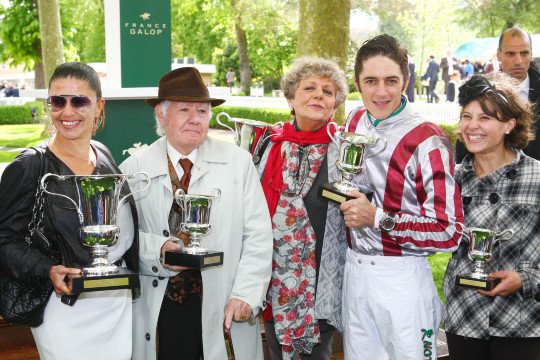 Propriétaire, éleveur, entraîneur, jockey et lad sont fiers de leur champion Cirrus des Aigles