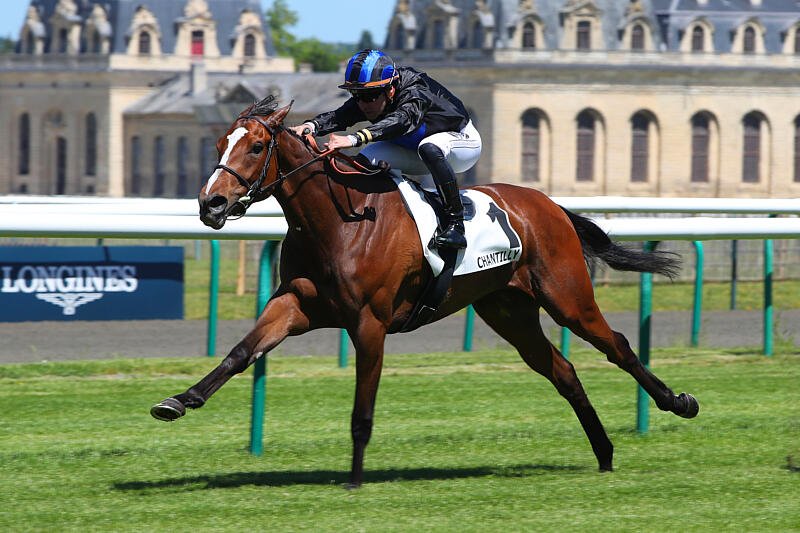 Rose Salvaje, montée par Stéphane Pasquier, avait offert en juin 2024 sa 2e victoire d'étalon à son père américain Maximum Security, et la 1e en Europe. photo APRH