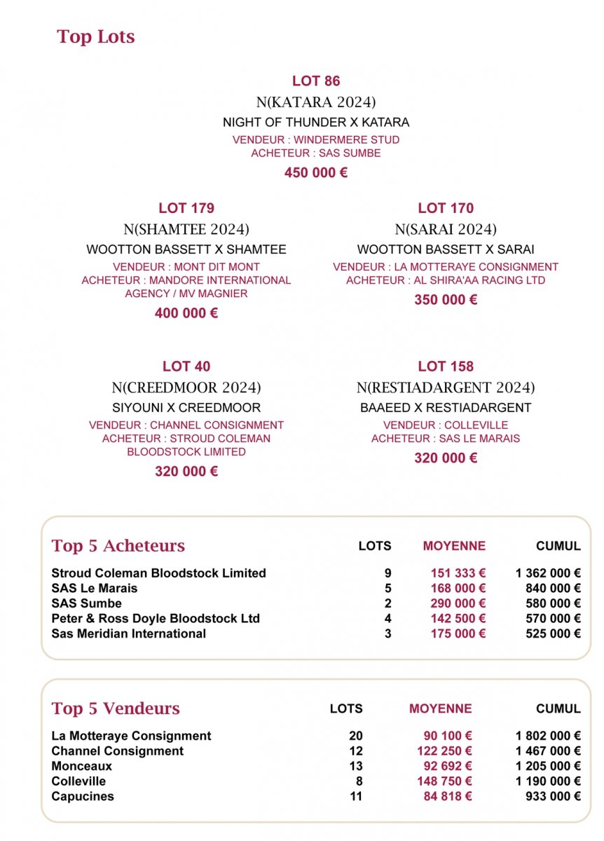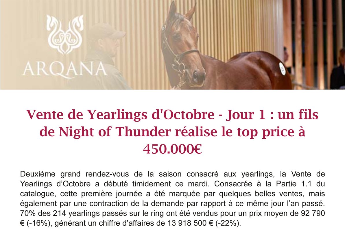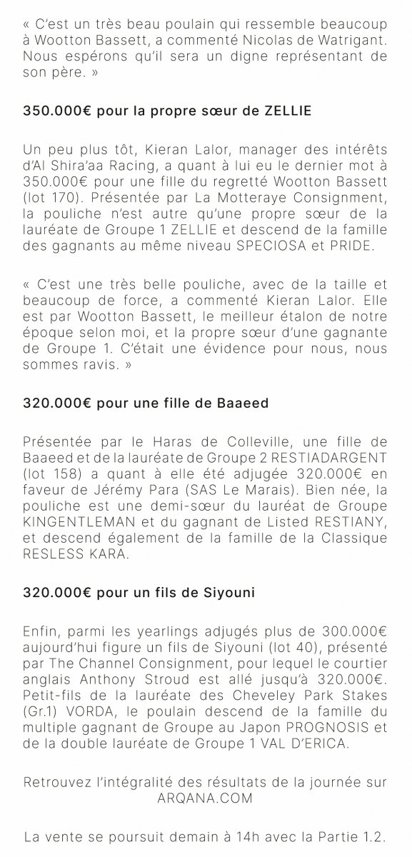 Top price à 450.000 euros pour Jeanine et Pierre-Hugues Henry dans une 1ère journée tendue à Arqana