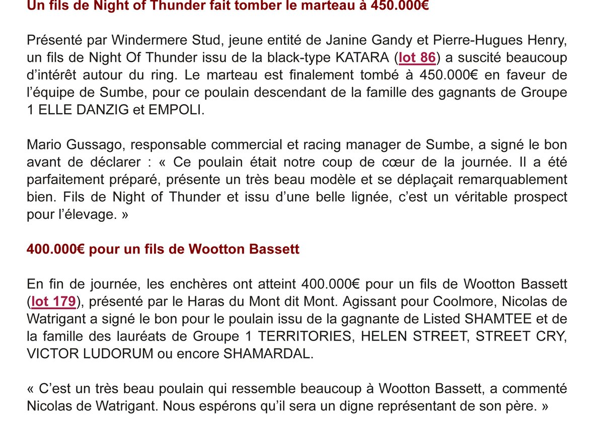 Le 2e top price, le lot 179 par Wootton Bassett vendu 400.000 € par le Haras du Mont Dit Mont.