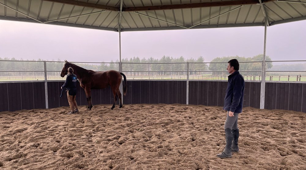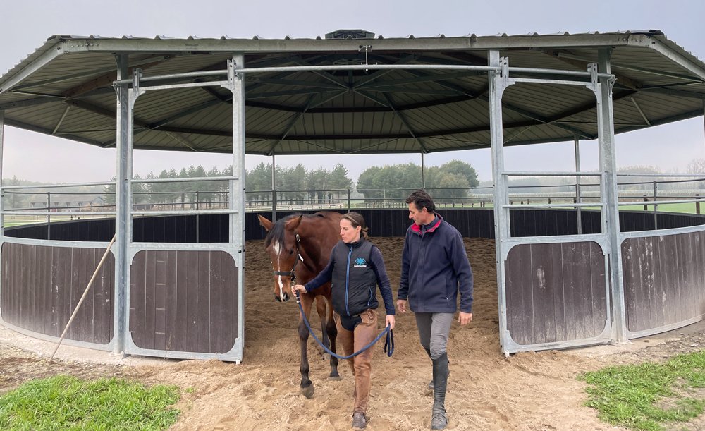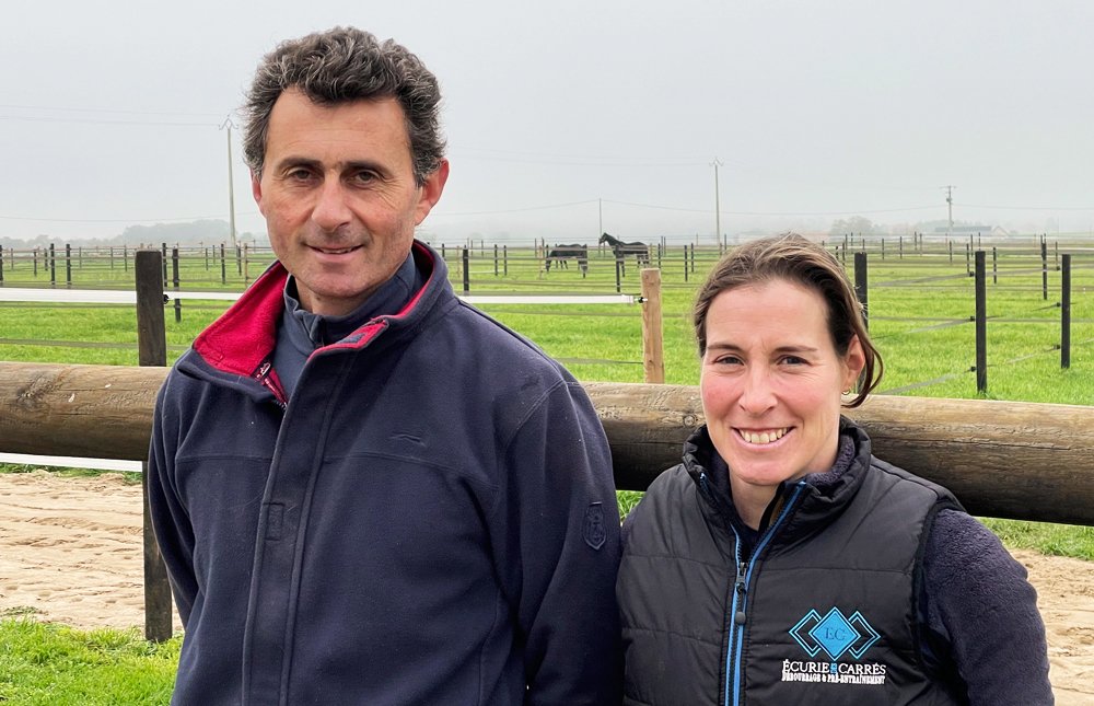 Après avoir passé 12 ans chez l'Aga Khan au Haras de Tupot, Roxane Knittel et Laurent Marchat ont crée leur propre centre de débourrage pré-entrainement en Anjou, avec la particularfité que tous les chevaux sortent au paddock. Depuis un an, ils dressent aussi les poulains sur les obstacles et leur écurie ne désemplie plus.