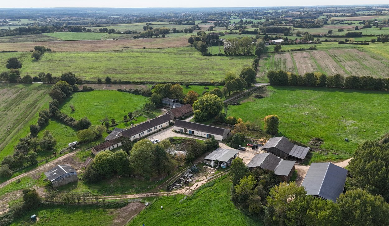 L’élevage s'étend sur environ 70 ha de prairies au cœur du fief familial sarthois, ayant vus grandir des générations de poulains percherons, des bovins, puis des chevaux de courses depuis 1989.