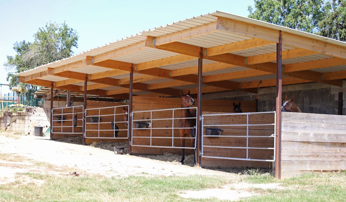 8 boxes 30m2, stabulation 1.000m2, manège