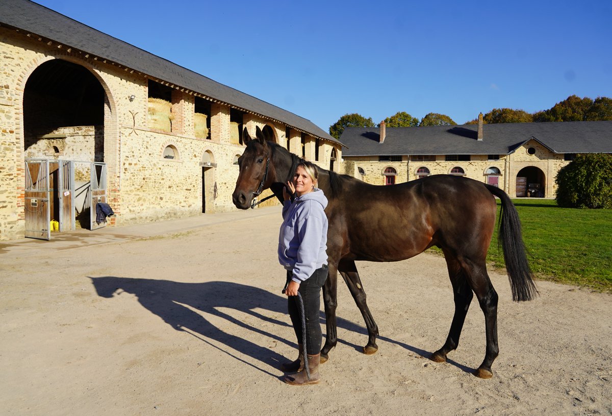 Voilà une spécialité qui trouve pleinement sa place dans le monde actuel avec ses contraintes de qualité et de gestion de personnel dans les élevages ou les écuries des entraineurs. Installées à Pommerieux en sud Mayenne, dans une région qui fourmille d'écuries de courses, et notamment celles de Senonnes Pouancé, et non loin des cliniques vétérinaires de Craon et de Meslay-du-Maine, Morgane Angot et Servanne Bouffort ont crée fin 2024 l'écurie Hirunda avec des services bien spécifiques. Ainsi, les deux jeunes femmes ont forgé leur expérience en tant que garçon de voyage et responsable des soins dans des écuries de courses pour l'une, et dans les centres equestres et écuries de propriétaires de l'équitation dite classique pour l'autre. Elles ont réuni leurs compétences complémentaires pour les mettre au service d'une actvité très spécifique. En effet, elles prennent en charge les chevaux au repos actif, c'est à dire des chevaux qui sortent de l'entrainement pour décompresser pour une courte période de 5 ou 6 semaines, et qui doivent continuer à s'entretenir physiquement au marcheur et au paddock. Mais aussi, elles s'occupent des soins, y compris les soins intensifs, des chevaux blessés et/ou en période post-opératoire, pour des période de convalescence après des tendinites, des fractures, etc... Pour certains cas, elles commencent la remise en action par du pas en main, puis du marcheur, puis du rond de longe, puis du petit paddock et enfin des grands paddocks. Les chevaux sont au petit soins à l'Ecurie Hirunda, qui profitent de la magnifique cour en U des écuries du Château de la Fougeray. En plus des 5 hectares de paddock, du marcheur et du rond de longe, les chevaux profitent aussi d'un solarium, d'une balance, de couvertures chauffantes, de guêtres refroidissantes et même de peluches pour s'occuper quand ils n'ont pas encore le droit de quitter le box ! L'Ecurie Hirunda propose 2 tarifs : 20 € HT / jour pour les repos au box avec soins intensifs (sur copeaux), ou 24 € HT/jour pour les repos actifs ou les convalescence avec soins intensifs.