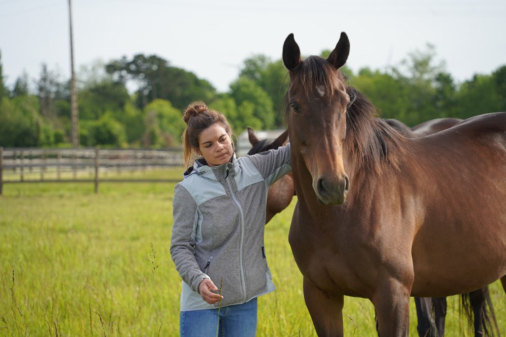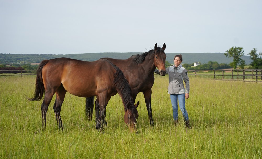 Fille d'éleveur en Bretagne, Céline Berthouloux a passé 10 ans en Normandie dans différents haras pour y travailler notamment dans le poulinage et la préparation aux ventes. Au décès de son père Goulven en 2016, elle est revenue sur le domaine familial pour en reprendre les rênes de l'élevage, qui a notamment donné Pesk Ebrel, 3e du Prix Cambacérès (Gr.1) à Auteuil en 2017.