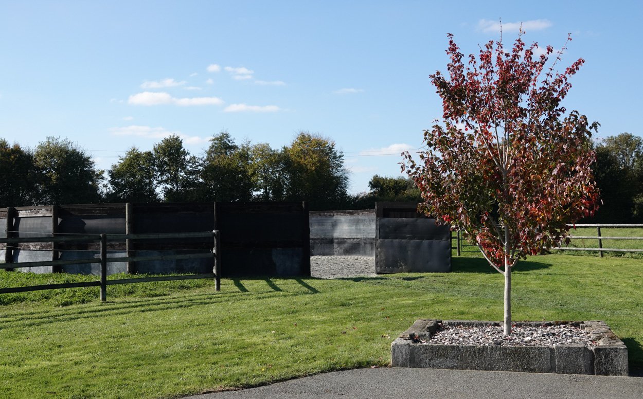 Tous les paddocks ont été cloturés de lices de bois. La batiment a été entièrement rénové et aménagé en écuries avec des grands boxes ouverts. Un autre petit batiment a été érigé pour la barre de gynécologie.