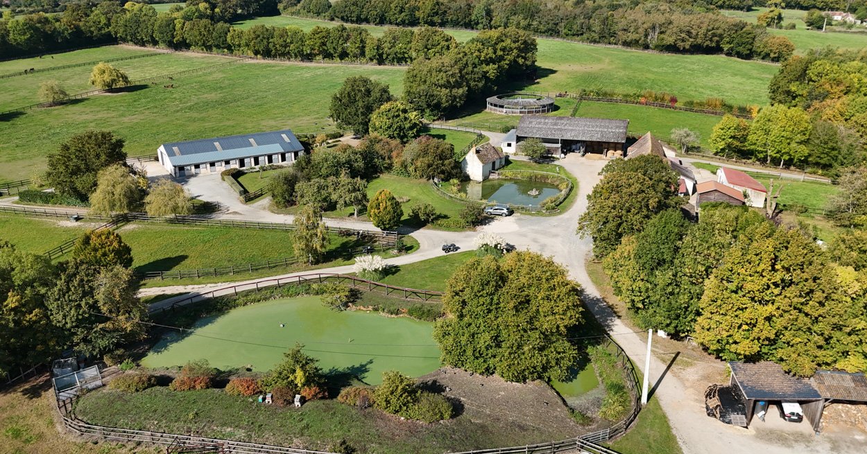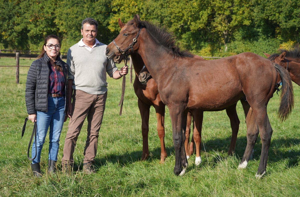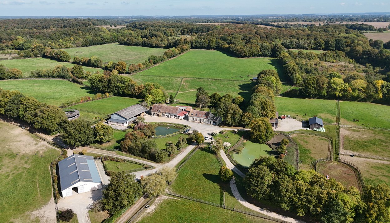 ENGLISH VERSION.  Coming from the Paris region, Isabelle and Nicolas Simon created the Haras des Marais in Sarthe in 2000. They discovered this property in the La Ferté-Bernard area, located 1.5 hours from Paris, and completely built the stud farm from scratch. Always drawn to racehorses, Isabelle, a former professional show jumping rider, and Nicolas developed a bespoke breeding operation for external clients. Their facilities now include 55 stalls, a covered and secure 8-horse walker, a treatment room, an ultrasound area, and other equipment spread across a rolling 80-hectare estate.